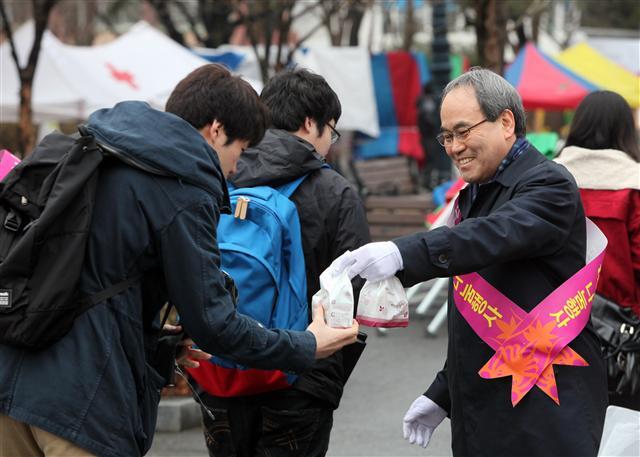 전북대 서거석 총장, 새 학기 떡·음료 나눠주기 행사