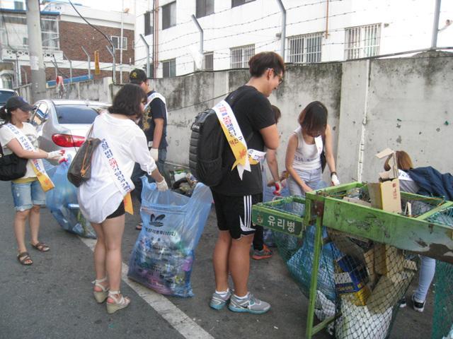이번 대청소에는 쓰레기 불법투기로 적발된 대학생 7명과 자원봉사자 5명이 참여해 잡쓰레기와 재활용품 등 1톤 가량을 수거했다.