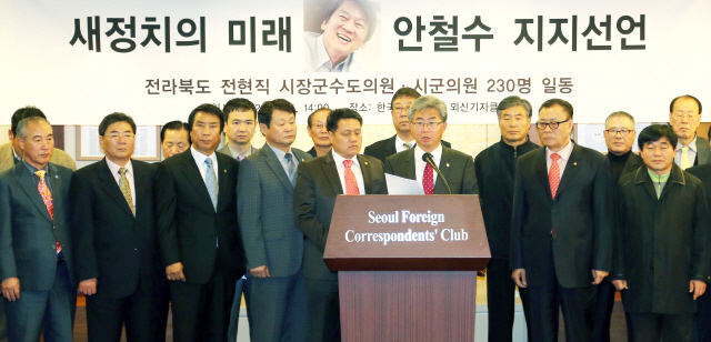 ▲ 전북 전현직 시장·군수·도의원·시의원 230명이 15일 오후 서울 중구 태평로1가 한국프레스센터에서 무소속 안철수 대선후보 지지선언을 하고 있다. ··· 연합뉴스
