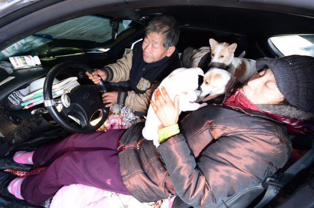 기초생활수급자로 등록을 하고 싶어도, 부부 명의로 돼 있는 차량 3대 때문에 불가하다. 이 차량들은 전혀 운행을 할 수 없는 상태다. 이들 부부가 차에서 사는 이유는 돈이 없어서이기도 하지만 생명의 은인과 다름없는 강아지들과 헤어질 수 없어서다.