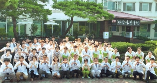 ▲ 전라북도 마음사랑병원 직원들이 하트를 취하며 기념촬영을 하고 있다.