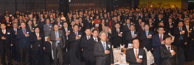 ▲ 5일 전북일보사와 재경 전북도민회, 삼수회 공동 주최로 서울 세종문화회관에서 열린 ‘2015 재경 전북도민 신년인사회’에서 참석자들이 국민의례를 하고 있다. 안봉주기자