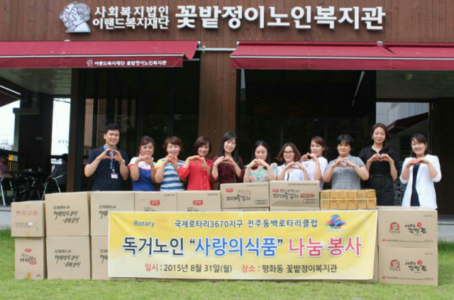 국제로타리 3670지구 전주동백로타리클럽(회장 조영순)은 지난 31일 전주 평화동 꽃밭정이노인복지관에서 ‘사랑의 식품’ 전달식을 열었다.