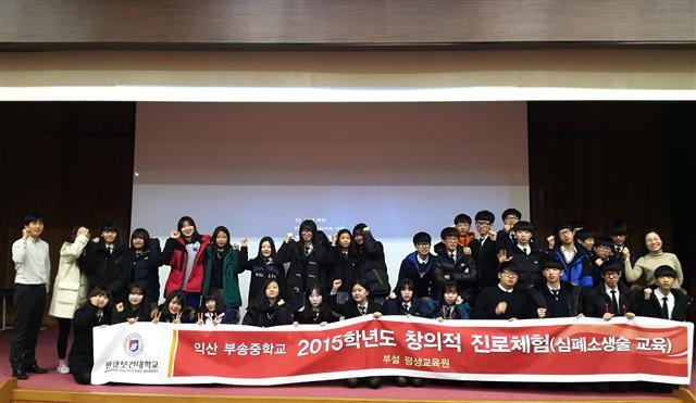 세부 교육은 익산 부송중 2·3학년 학생 547명을 대상으로 지난 11월16일부터 12월 29일까지 총 6회에 걸쳐 진행됐다. 대학 간호학과 김여진 교수, 평생교육원 신정호 선생 등이 강사를 맡아 응급처치, 심폐소생술, 안전사고 예방 등 다양한 체험 프로그램을 제공했다.