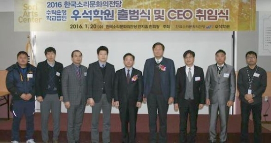 우석학원이 소리전당 운영의 첫 발을 내딛는 자리인 이날 출범식에는 서창훈 우석학원 이사장, 전성진 소리전당 대표, 정희석 운영지원본부장, 이용재 사무처장, 소진수 경영관리부장, 양승수 문화사업부장, 박홍재 고객지원부장 등 양 기관 임직원 40여명이 참석했다.