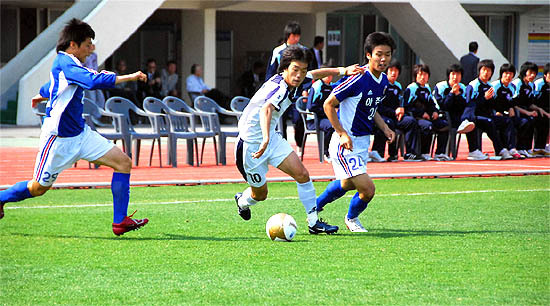 승부를 원점으로 돌린 아주대가 현란한 개인기를 자랑하는 공격수들을 전방에 대거 내세워 우석대의 ‘빗장수비’를 뚫기 위해 맹공을 퍼붓은 것.