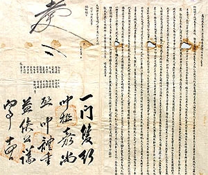 오늘은 조선시대의 효자와 열녀의 기괴한 행적이라고 할 수 있는 할고(割股) 행위를 고문서에서 살펴보자. 할고란 글자 그대로 허벅지의 살을 도려내는 것으로, 자신의 멀쩡한 생살을 도려내 병든 부모에게 드린 것을 가리킨다. 요즘에야 생각만해도 끔직한 일이겠지만, 유교사회였던 조선시대에서는 결코 보기 드문 일이 아니었다. 예컨대 그림에 보이는 고문서는 조선 말기로 추정되는 을해년에 전라도 만경의 유생들이 관찰사에게 올린 상서인데, 같은 고을의 임시원과 그의 아내 백씨의 효행과 열행을 칭송하면서 이들에게 정려의 표창을 내려줄 것을 청원하는 내용을 담고 있다. 그런데 여기에 기재된 이들 부부의 행적은 그야말로 눈시울이 뜨거워질 정도이다. 임시원은 어려서 아버지를 여위고서 홀어머니를 모시고 살았는데 어찌나 효성이 지극하였던지 하늘도 감응하여 어머니가 꿩고기를 먹고 싶다고 하면 옆집 개가 알아서 꿩을 물어오고 겨울날에 생고사리가 먹고 싶다고 하면 하늘에서 생고사리가 저절로 떨어질 정도였다. 아내인 백씨도 남편 못지 않았다. 그녀는 시어머님과 남편을 지극 정성으로 섬겼으며, 남편이 병들어 죽을 지경에 이르자 자기 살을 베어내어 남편을 살리고자 하였으며, 끝내는 자기 손가락을 잘라 그 피를 마시게 하여 이틀이나 남편의 목숨을 연명케 하였다.