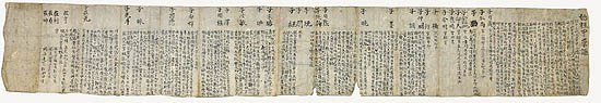 책자로 만들어지기 전 두루마리 형태로 시조로부터 자신까지 직계만을 기록해 놓은 것을 흔히 가승이라고 한다. 가장 일반적으로 볼 수 있는 것이 바로 가승이다. 위의 문서는 평산 신씨의 가승이다. 이에 따르면 시조인 신숭겸(申崇謙)으로부터 27대 후손인 광두(光斗)까지 단선으로 기록하고 재원, 재형, 재리, 재정, 재곤의 다섯 아들을 기록하고 있다. 이로 보아 이 가승은 광두의 아들인 5형제 중 누군가가 기록한 것으로 보인다. 그리고 재형(在亨)이 정종(正宗) 갑인생(甲寅年 ; 1794) 생이라고 한 것으로 보아 막내인 재곤의 생년인 무진은 1808년이 된다. 그러므로 이 문서는 이 이후에 작성된 것으로 추정된다.
