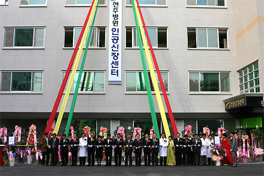 이날 문을 연 인공신장센터는 지상 4층, 지하 1층 등 1710㎡ 규모로 동양인 체질에 맞는 일본의 최첨단 정수시스템과 혈액투석기 34대 등을 갖춘 호남 최대 규모로 각 투석진료 침상마다 최신 비디오시스템이 설치돼 있다.