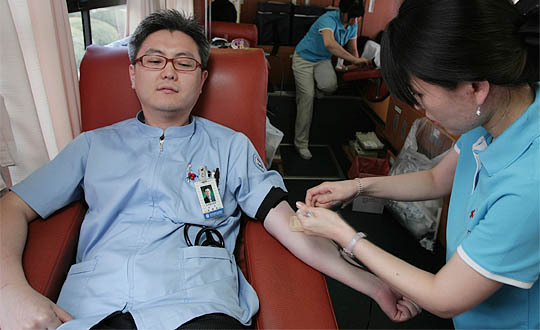 전북대병원은 21일 연중 혈액이 가장 부족한 8월말 '전직원 헌혈의 날' 행사를 열었다. 이날 행사에는 전북대병원 교수·간호사 등 의료진과 일반 직원·전북대 의학전문대학원 및 간호대 학생·용역 업체 직원·일반 방문객 등이 150여명이 참여했다. 김영곤 원장은 "방학으로 혈액수급이 어려운 이때 의료진 등이 생명을 나누는 헌혈에 동참해 이웃사랑을 실천했다"면서 "생명을 나누는 일에 지역주민의 적극적인 동참도 이뤄지길 바란다"고 말했다.