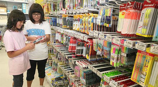 신학기를 맞아 문구용품을 준비하려는 학생들이 늘고 있다. 24일 전주 홈플러스 문구매장을 찾은 학생들이 필기도구를 고르고 있다.