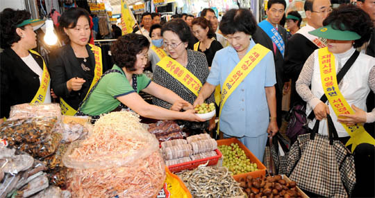 9일 전주 모래네 시장에서 열린 가운데 참석한 시민들이 추석 제수용품을 고르고 있다.