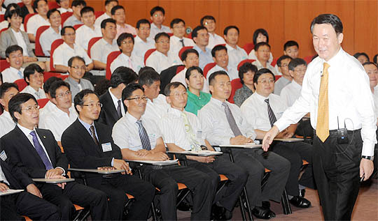 한상률 국세청장이 16일 전주 KT전북본부빌딩 강당에서 국세청 직원들을 대상으로 섬기는 정부 구현을 위한 국세행정 운영방안에 대한 특강을 하고 있다.