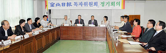 22일 전북일보 회의실에서 열린 전북일보 독자위원회 제19차 정기회의에서 서정일·라대곤 부위원장을 비롯한 위원들이 의견을 나누고 있다.
