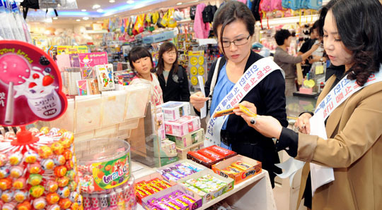 중국 발 멜라민 공포가 확산되면서 29일 전주의 한 초등학교 앞에서 공무원과 식품안전지킴이, 소비자 식품위생감시원들이 합동 지도 단속을 벌이고 있다.