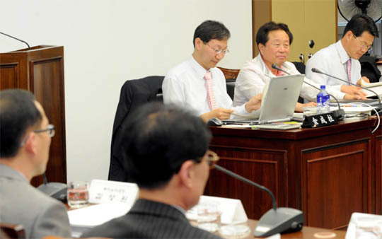 8일 전북도의회 산업경제위원회에서 열린 전북도 투자유치국 추경예산안 심의에서 의원들이 관련 서류를 살펴보고 있다.