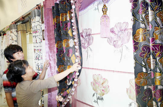 아침 저녁으로 서늘한 바람이 불면서 커튼을 준비하려는 사람들이 많아지고 있다.8일 전주 중앙시장의 한 커튼전문매장에서 고객들이 커튼을 살펴보고 있다.