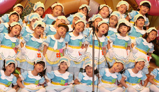 14일 전주 덕진종합예술회관에서 열린 제1회 푸른도시가꾸기 창작동요 대회에서 참가한 어린이들이 동요를 부르고 있다.