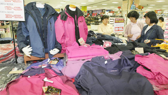 붉게 물드는 단풍철을 맞아 백화점과 대형마트들이 등산용품 할인 판매행사를 하고 있는 가운데 20일 전주의 한 대형마트 의류 코너에서 고객들이 등산복을 고르고 있다.
