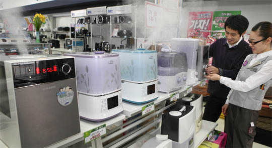 건조한 실내 공기를 촉촉하게 해주는 가습기는 가울,겨울철 가정의 필수품이다.28일 전주의 한 가전매장에서 고객이 가습기를 고르고 있다.