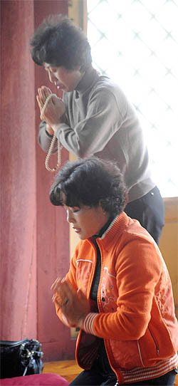수능을 열흘 앞둔 3일 전주 안행지구 정혜사에서 수험생 자녀를 둔 학부모들이 불공을 드리고 있다.