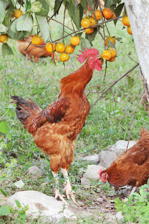 나무 위에 걸린 감들이 서릿발에 절로 익어가는 오늘은 입동. 완주군 동상면의 한 농가에서 암탉과 데이트에 나선 수탉이 까치발을 한 채 감을 쪼는 모습이 카메라에 포착됐다.