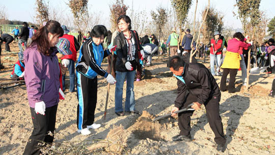 11일 숲의 날을 맞아 전주시와 푸른전주운동본부(대표 허종현)는 전주시 중인동 완산체련공원에서 느티나무와 왕벗나무 등 200여그루의 나무를 심었다.