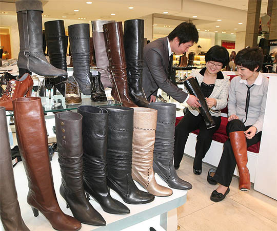12일 롯데백화점 전주점에서 고객들이 가을,겨울철 기능성과 패션 아이템으로 각광받고 있는 부츠를 고르고 있다.