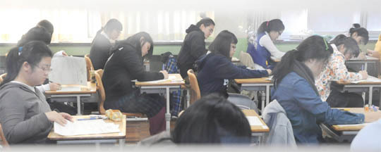 2009학년도 대학수학능력시험이 열린 전주 성심여고에서 수험생들이 신중하게 문제를 풀고 있다.