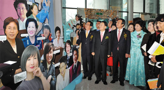19일 전북대 진수당에서 열린 '전북 여성 삶의 발자취 방향전'에서 이인식 여성부차관, 김완주도지사 부부내외, 김희수도의회의장, 최규호도교육감, 이영조도의원 등이 참석해 전시를 둘러보고 있다.