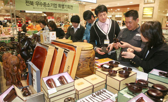 25일 롯데백화점 전주점 지하1층 행사장에서 열리고 있는 전북 우수 중소기업 특별 기획전에서 고객들이 제품을 살펴보고 있다.