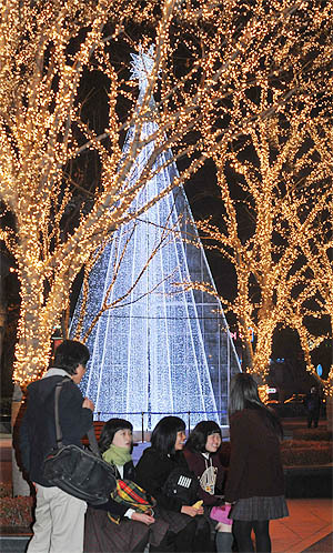 크리스마스를 한달 앞둔 26일 롯데백화점 전주점 광장. 초대형 크리스마스 트리와 나무에 매단 5만여개의 전등이 주위를 환하게 밝히고 있다.