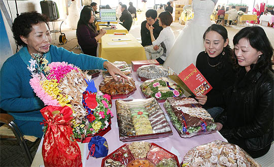 지난 30일 전주 진북터널사거리 휴먼빌 모델하우스에서 전북결사모 주최로 열린 제8회 전주웨딩박람회에서 고객들이 업체의 설명을 듣고 있다.