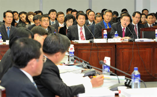 전북도 이경옥 행정부지사(답변석 앞줄 맨 오른쪽)가 3일 열린 전북 도의회 예결특위에 출석, 의원들의 정책질의에 답변하고 있다.