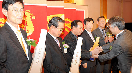 4일 전주 리베라호텔에서 열린 전북 수출 및 투자 유공인의 날 행사에서 한명규 정무부지사가 수출 및 투자유공자에 대한 시상을 하고 있다.