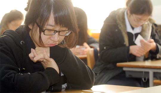 2009학년도 대학수학능력시험 성적통지표가 발표된 10일 전주여자고등학교에서 수험생들이 심각한 표정으로 통지표를 보고 있다,