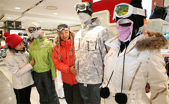 본격적인 스키 시즌이 되면서 11일 롯데백화점 전주점에서 다양한 디자인의 스키복과 모자, 고글 등을 선보여 고객들의 눈길을 끌고 있다.