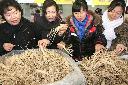 팔도 우수 전통식품·전라북도 농·특산물 대잔치가 열리고 있는 14일 농협하나로클럽 전주점 특설매장에서 고객들이 인삼을 고르고 있다.