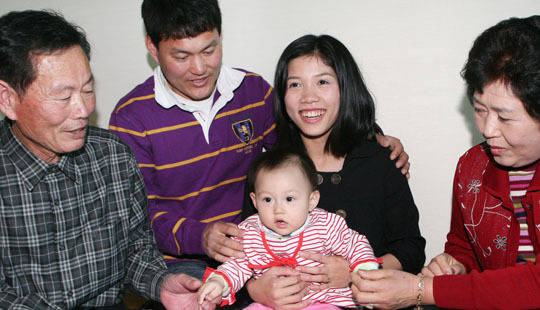익산시 여산면 홍성하·영디녕씨 가족. 9개월 된 딸 수연이를 안고 있는 영디녕씨의 한국 이름 '김소현'은 시아버지 홍동표씨가 직접 작명소에 가서 지어 주셨다.