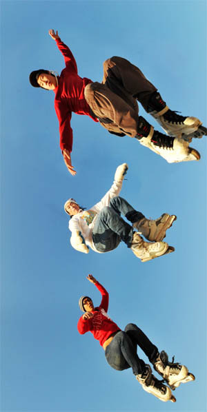 어그레시브 인라인에 빠진 이들이 모인 긱스(GIX·회장 송주일)가 지난주 전주시 서신동에서 어그레시브 인라인 묘기를 선보였다. 어그레시브 인라인을 타다 보면 무릎이나 정강이가 깨지는 것은 예삿일. 심하게는 착지를 하다 머리를 다치기도 한다. 위험한 데다 전주는 전용 시설이 거의 없어 어그레시브 인라인 인구가 적은 편. 하지만, 미쳐본 사람만이 안다. 짜릿한 맛에 중독되면 쉽게 빠져나올 수 없다.