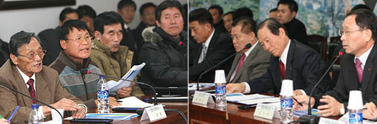 지난 14일 오후 4시40분부터 2시간 넘게 진행된 28㎞ 송전철탑 설치와 관련한 '문동신 군산시장과 철탑 경과지역 주민들 간의 대화'는 서로의 입장차만 확인하는데 그쳤다. 한국전력 및 시 관계자, 취재진, 시민 등 100여명이 참석한 가운데 시청 상황실에서 진행된 이날 대화는 초반부터 한치의 양보도 없었다.