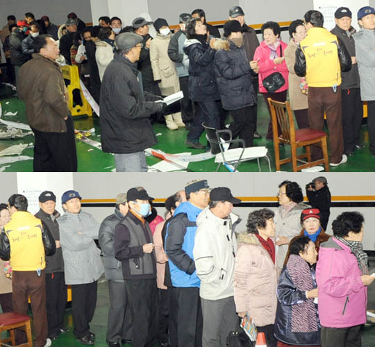 배움을 위한 노인들의 열정 20일 전주시내 3개 노인복지관이 2009년 복지관 운영프로그램에 대한 수강신청을 접수받았다. 이날 새벽 6시께 전주시 삼천동의 양지노인복지관 지하 추자장에 번호표를 받기 위해 노인들이 길게 줄을 지어 서있다. 이날 현장에 나온 노인들은 원하는 프로그램 수강을 위해 새벽 1시부터 모여 장사진을 이뤘다.