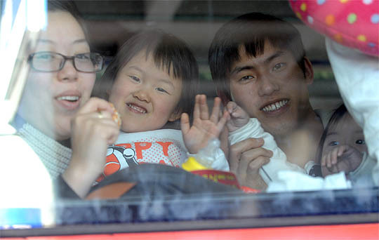 설 연휴 끝날인 27일 전주역에서 한 가족들이 손을 흔들며 고향을 떠나는 마음을 달래고 있다.