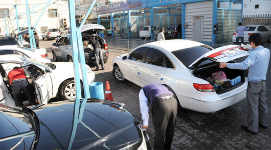28일 전주시내 한 셀프세차장에서 시민들이 설 명절 연휴기간동안 눈길 운행으로 더러워진 차량을 세차하고 있다.
