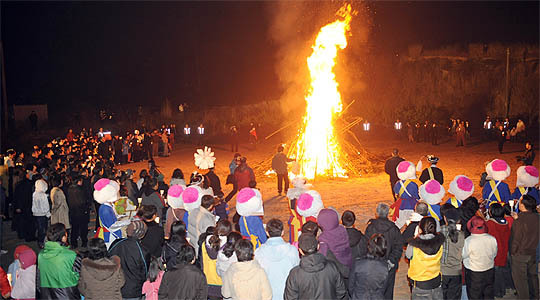 7일 익산 미륵사지 광장에서 열린 정월대보름 한마당 행사를 찾은 시민들이 달집태우기를 보며 흥겨운 시간을 보내고 있다.