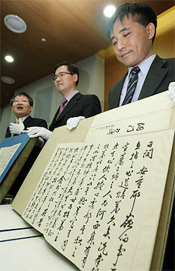 '정조 어찰 공개 기자회견' 지난 9일 서울 성균관대학교에서 김문식 단국대 교수, 안대회 성균관대 교수 등 관계자들이 기자회견을 열고 새로 발굴한 정조 어찰 299통 중 일부를 공개하고 있다. 이 편지들은 모두 정조가 친필로 써 심환지 한 사람에게 보낸 것으로서 정조 말년 국왕을 정점으로 하는 정국 동향을 파악하는 데 획기적인 가치를 지닌 자료로 평가된다. (desk@jjan.kr)