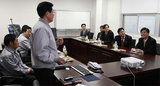 12일 군산에서 열린 새만금-군산경제자유구역청(청장 이춘희)과 군장국가산업단지 경영자협회 소속 임원진·유관기관 대표와의 간담회에서 참석자들이 경제자유구역 개발 계획과 투자여건 등에 대해 이야기를 나누고 있다.