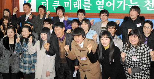 19일부터 구청과 동사무소에서 근무하게될 행정인턴들이 전주시청 회의실에서 파이팅을 하고 있다.