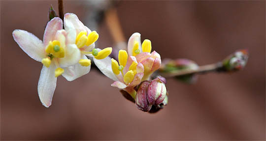 봄맞이꽃인 길마가지꽃이 24일 전주 반월동 한국도로공사 전주수목원에서 꽃망울을 터뜨렸다. 진한 향기로 길을 막는다하여 붙여진 이름. 대개 3월에 피지만, 지구 온난화로 개화 시기를 한달이나 앞당겼다.