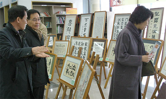 전주시 완산구청 민원실을 찾은 시민들이 서예작품을 감상하고 있다. 이번 전시는 평화 2동 주민자치센터 수강생들의 서예작품으로 30여점이 전시되며, 딱딱한 관공서 이미지를 탈피하고 문화공간으로 거듭나고 있다.